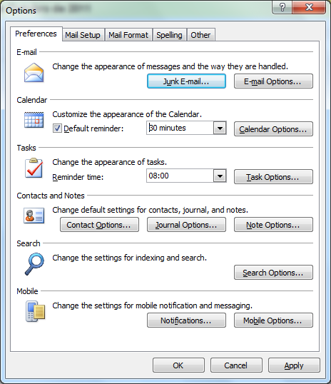 Of course, alarm settings can be manually changed on the Appointment, but since all other appointments automatically use the user-defined settings on the Outlook Options, people will often forget it. Until, of course, its 6:00 AM the previous day... like Sunday!