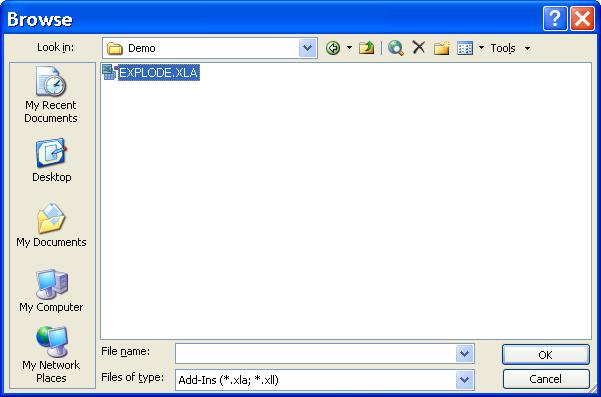 Excel will tell you where it is. Click on the “Browse” button and you will get the regular “file open” dialog box, open by default on the Add-Ins folder:
