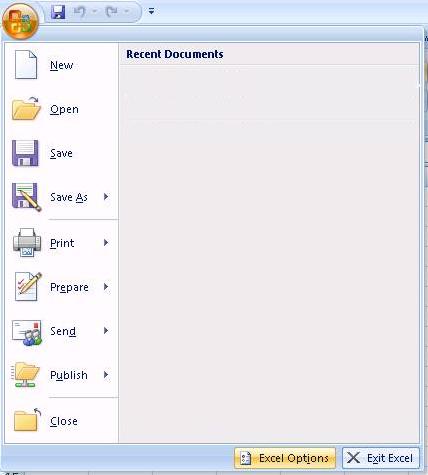Excel 2007 Add-Ins are managed from the “Excel Options” button on the “Office Menu” menu: