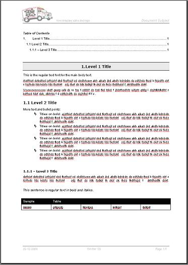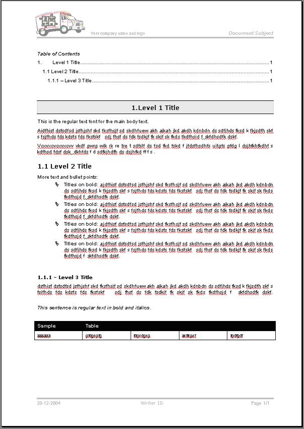 This template is specially suited to longer documents, with a emphasis on highly visible main chapter titles (Level 1 Titles) and include formats for the most used elements: bullets, tables and subtitles.